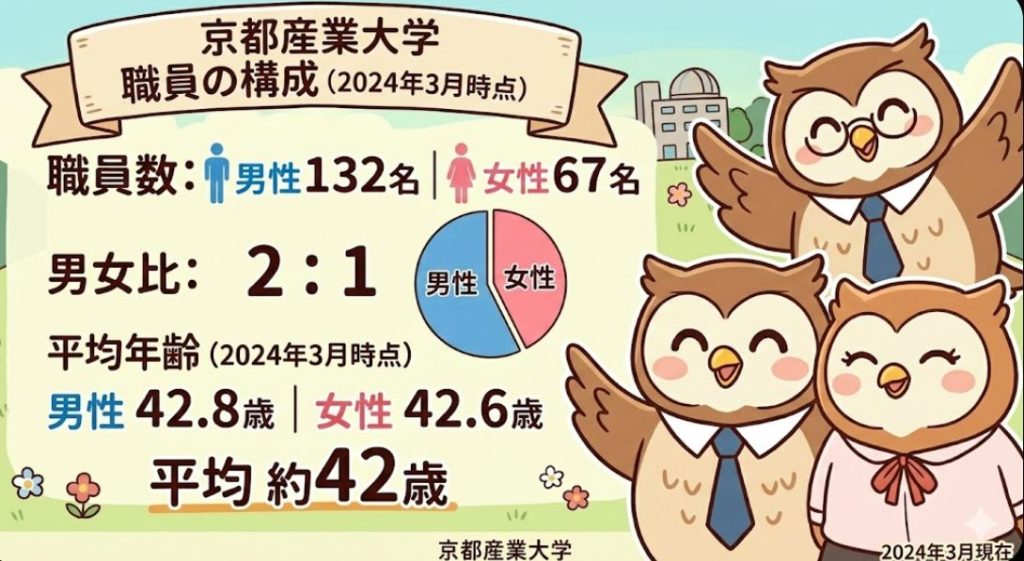 京都産業大学職員の平均年齢はかなり一般的と言えそうです